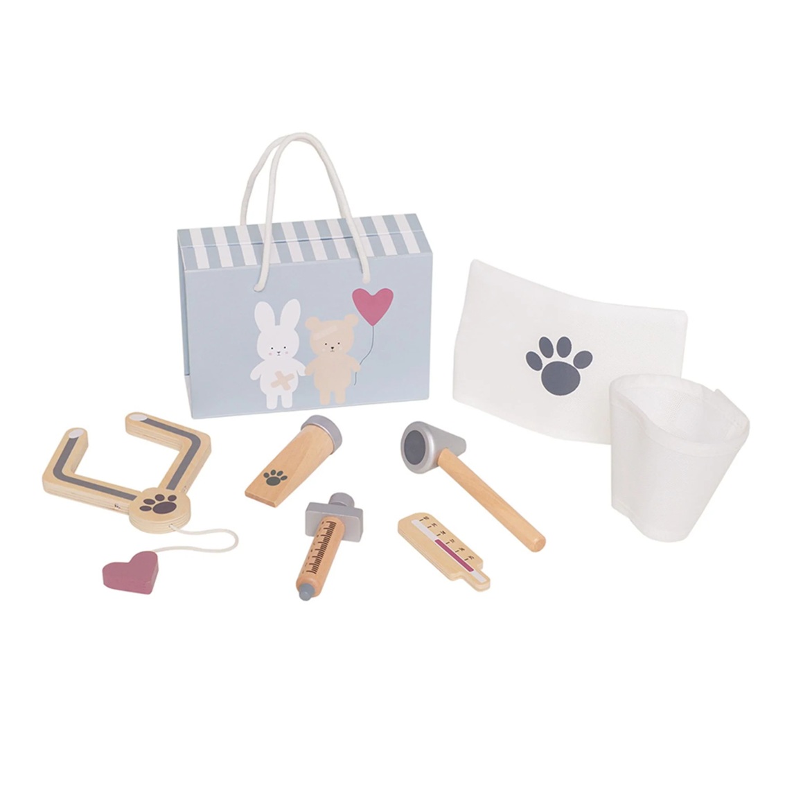 Loading... Please wait...-This equipped veterinary bag with magnetic closure has all the right wooden tools to save your beloved animals and cuddly toys in need.