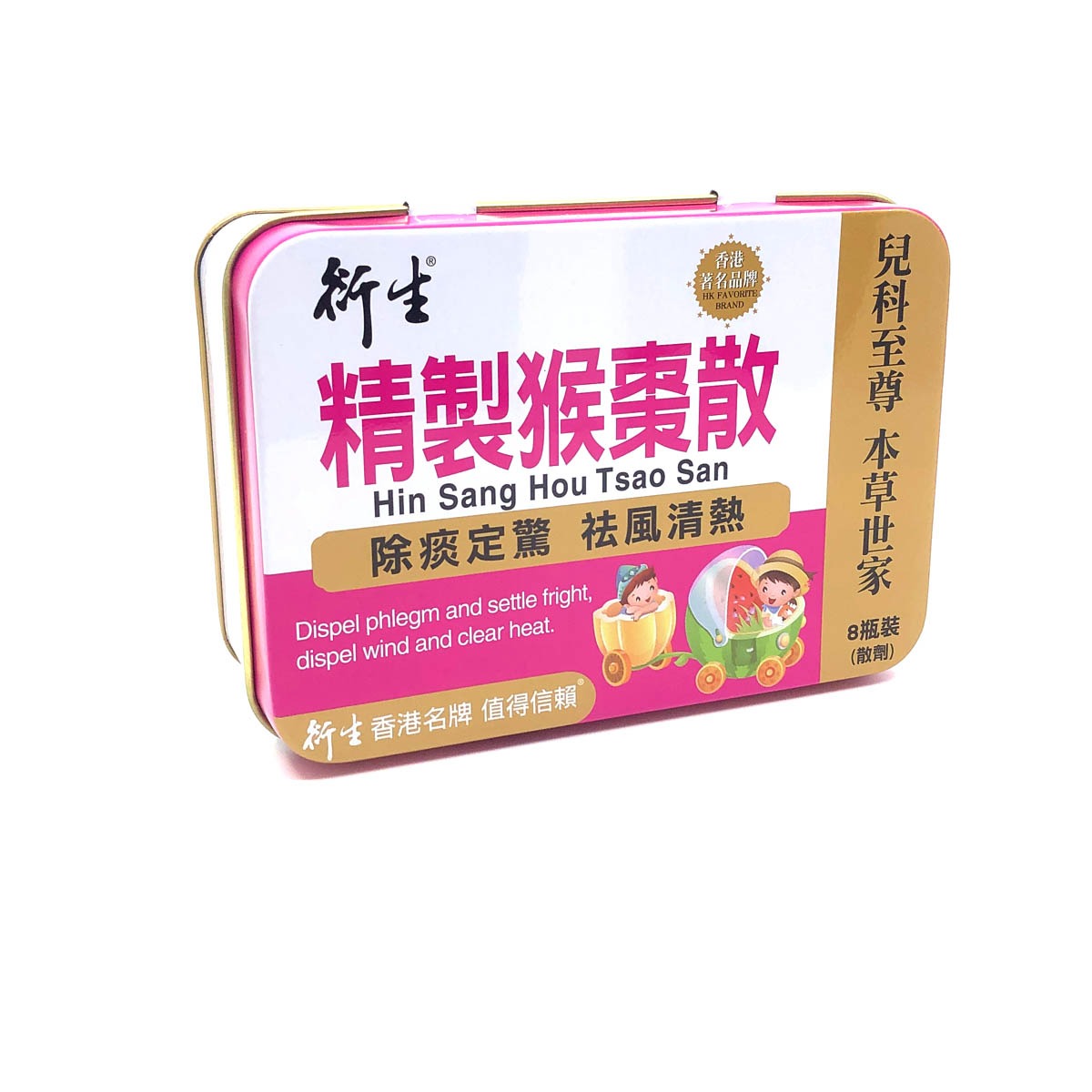 衍生精製猴棗散 可除痰定驚,祛風清熱。由猴棗、全蠍、珍珠及天竺黃等成分精製而成,加入體外培育牛黃,幫助BB化痰止咳等問題。
