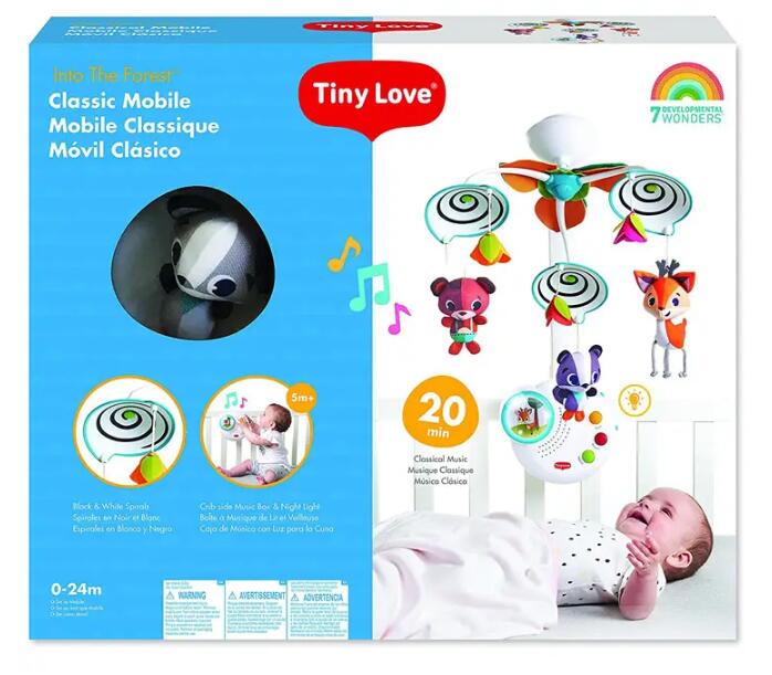 經典嬰兒床鈴與可愛的 Into the Forest™ 設計相得益彰, 為發展注入新的活力!從小陪伴寶寶成長,促進寶寶發展溝通和語言技能。-獨特設計,帶有迷人的黑白螺旋,可刺激嬰兒的視覺認知。-20 分鐘不間斷的音樂有助於安撫寶寶入睡的時間,支持情商的發展。-隨著您的寶寶成長,可轉變為獨立的音樂盒。-柔和的小夜燈將幫助寶寶安靜地進入夢鄉。-不同按鈕可鼓勵孩子獨立思考並激發其探索精神。-適合0個月或以上
